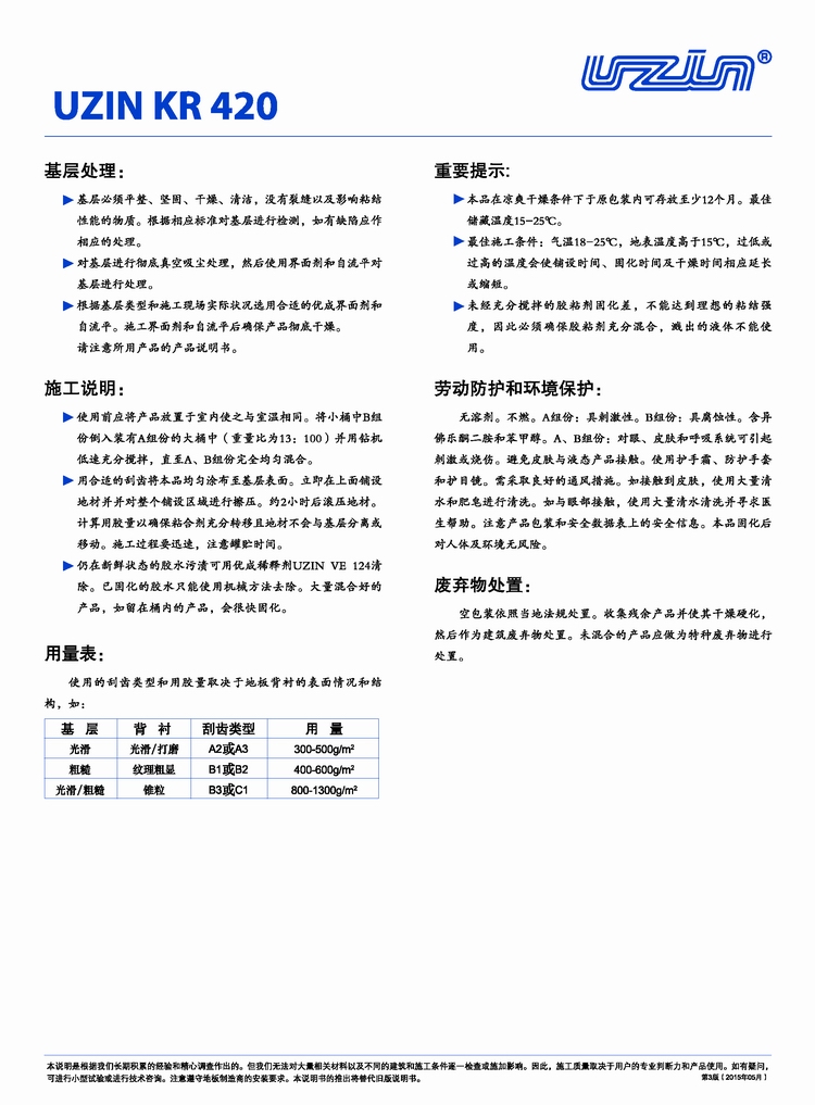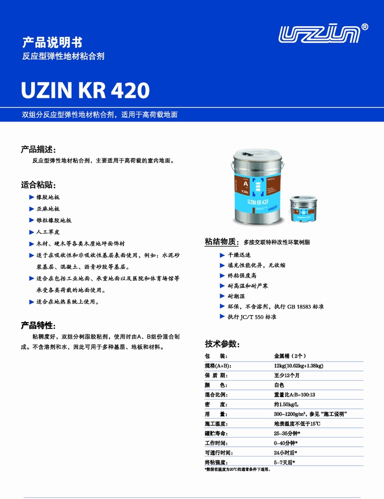 優(yōu)成KR420反應(yīng)型彈性地板粘合劑