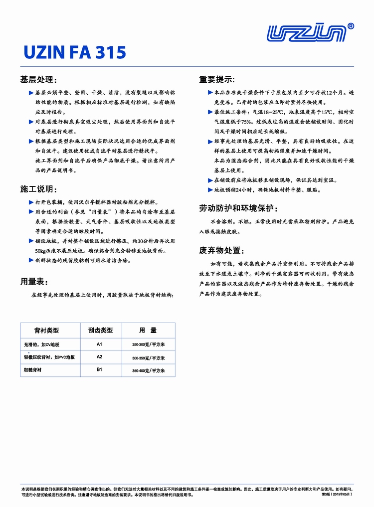 優成FA35PVC地板水性膠粘劑