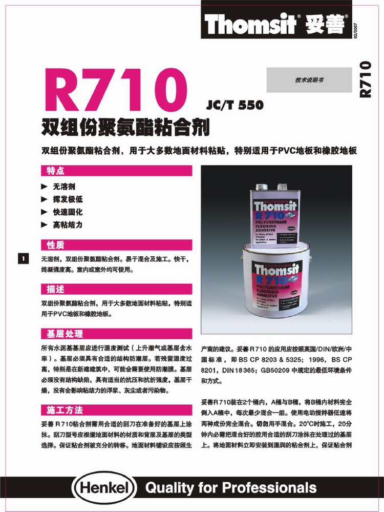 漢高R710雙組份聚氨酯粘合劑